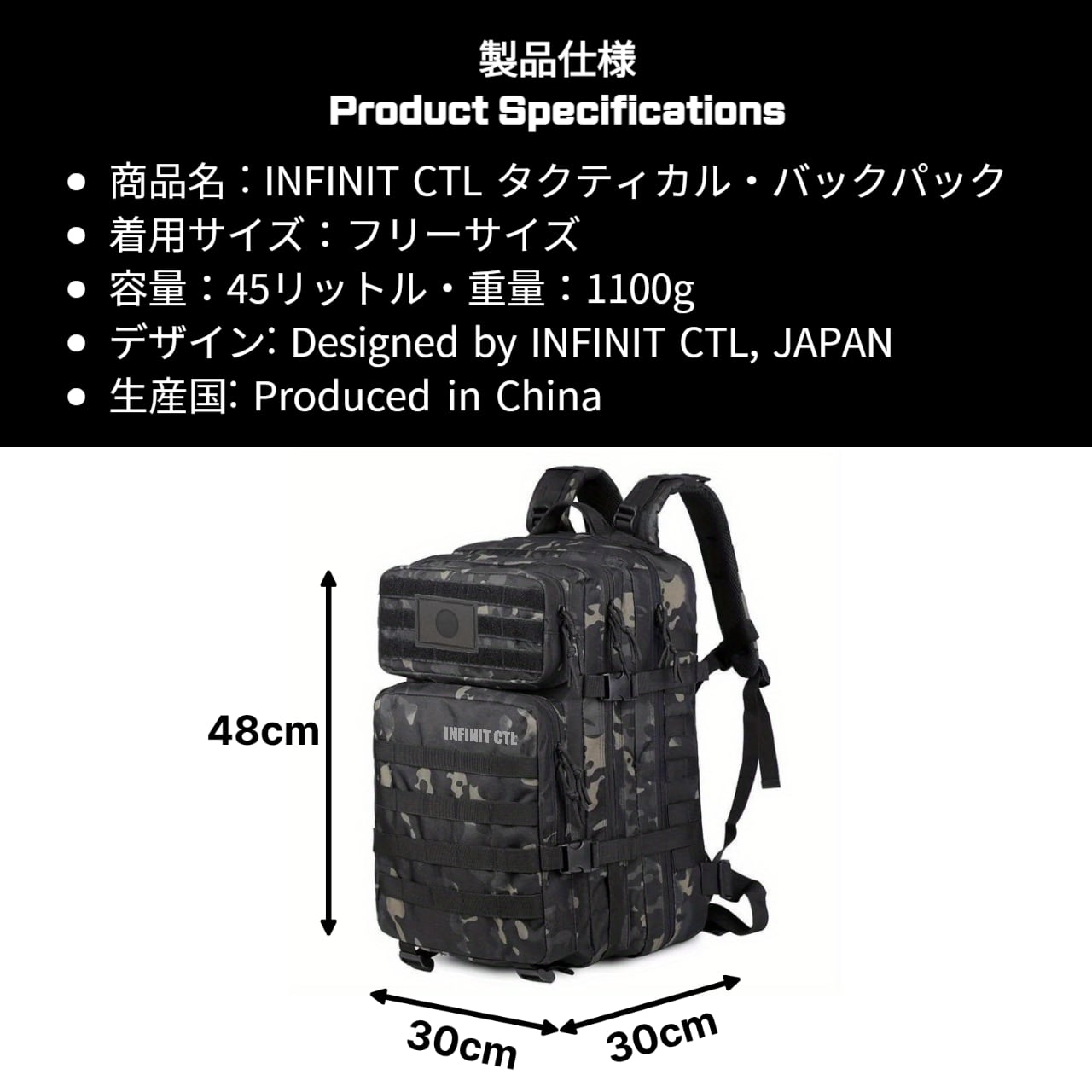 【あらゆるフィールドを制覇する、圧倒的な収納力と耐久性】 過酷なアウトドアシーンから、ジム、旅行、そして日常のヘビーユースまで。INFINIT CTLのタクティカルバックパックは、機能美とミリタリースペックの強靭さを兼ね備えた究極のギアです。